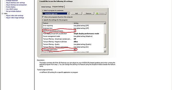 - Now enter nvidia control panel and turn on threaded optimization and prerendered frames to 1 for tremulous.
