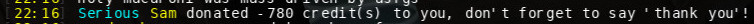 For example, I bet enneract had 2780 credits by selling in the armory with 2000 credits in the pocket, he got donated in that moment and lost those 780 credits.