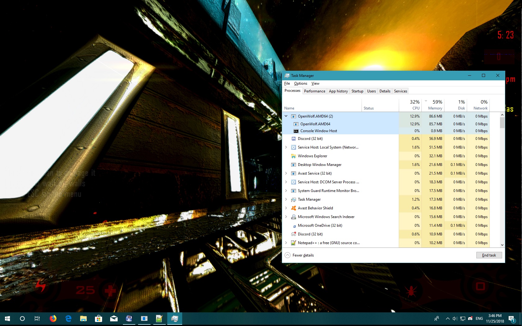 While playing memory requirements is getting down. From ~ 325 MB to ~87 MB after 5 minutes of playing the game.