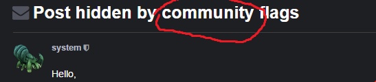 @Ckit had an issue with another user’s post, he felt that user’s post was inappropriate. But instead of flagging that user’s post, he decided to personally attack that user in a reply. Ckit’s post was then flagged, and he was notified what he would need to change (remove the personal attack) in order for his post to be unhidden. But he took offense to this, but did edit that post, and his post was unhidden.