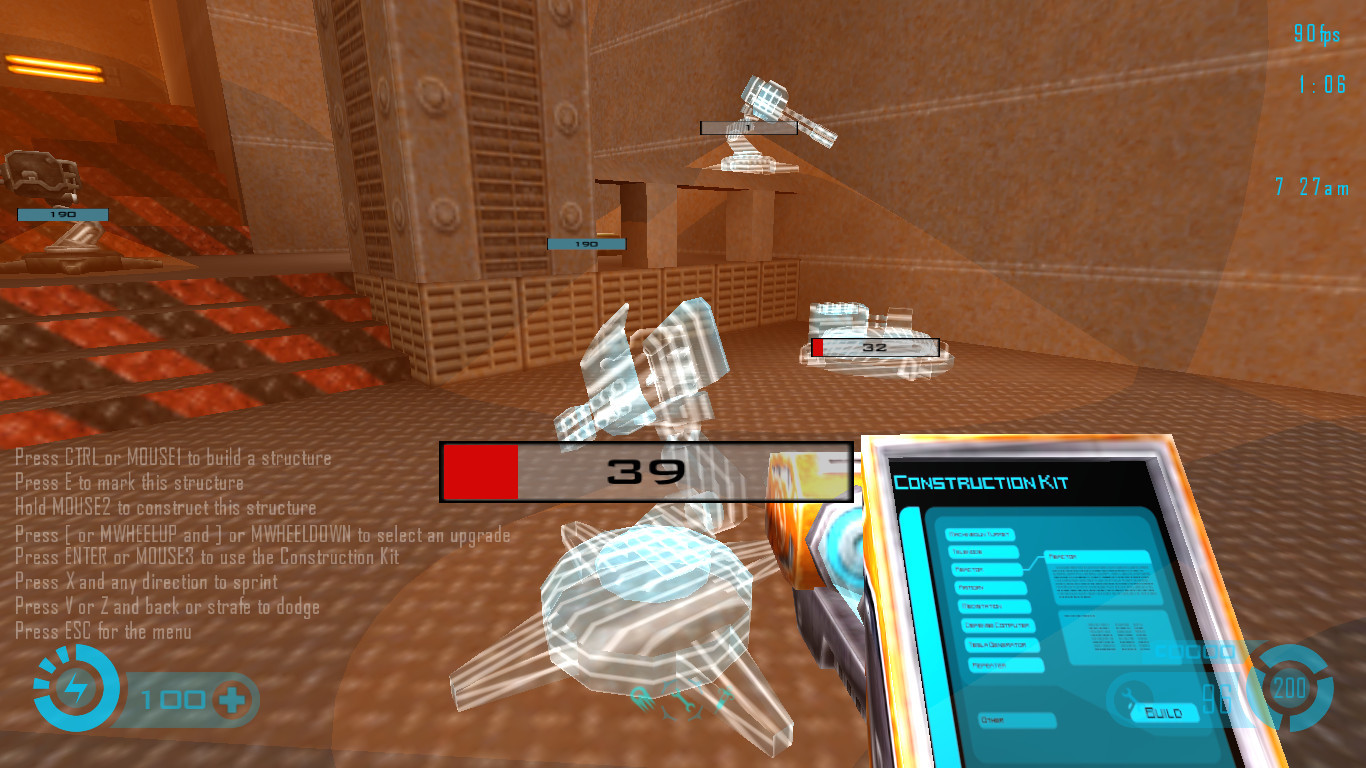 We are testing a new feature for the Swirl game mode where the construction kit no longer uses a build timer, can place any number of buildables that are in a simultanous constructing state. Once a human buildable is placed by a construction kit, for the buildable to fully construct, you must use the construction kit to “repair” that buildable. Multiple construction kits used on the same buildable can accelerate its construction. The defense computer can automatically construct any constructing buildable but at half the usual construction rate.