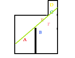 Player [color=FFCC44]E[/color] should be able to see [color=FF0000]A[/color], [color=8888FF]B[/color], [color=00FF00]C[/color], and [color=FF9999]F[/color], but not [color=FFFF00]D[/color].