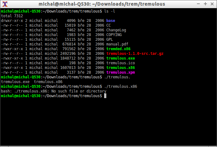No, I unzipped tremulous-1.1.0.zip into ~/Downloads/trem/tremulous, went there and tried to run the executable - tremulous.x86, it said: No such file or directory