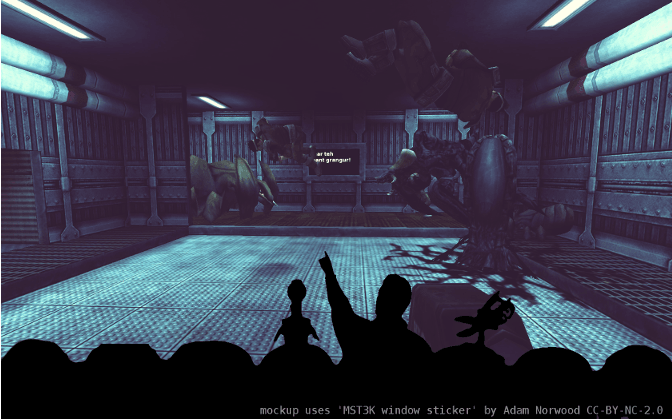 …except use tremulous players & structure models for the silhouettes. View would automatically cycle to different players / views to watch the action passively like a movie. The spectators would have a taunt like BOO and also a cheer / applause (amongst other sounds) that the other specs hear. (heard by players too, as an option if they desire).