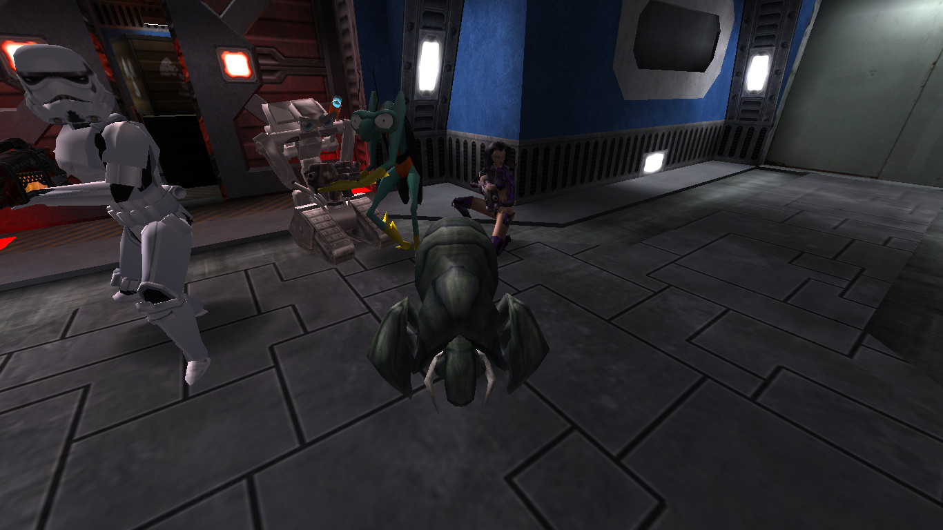Featured above are 4 humans, each with a different quake3 model. The system has some basic support for skinning as well.