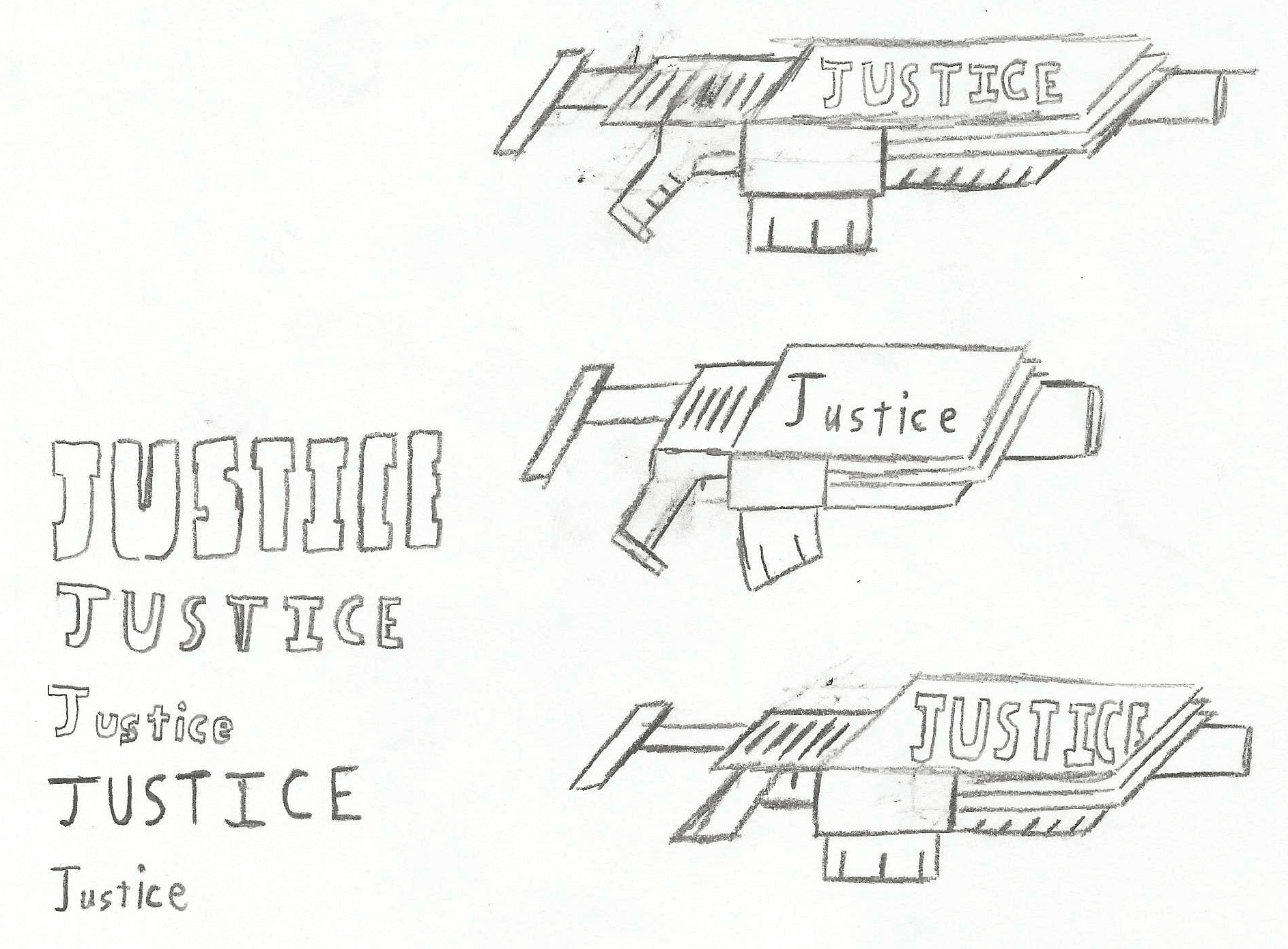 I am working on a cool new weapon model. Here are some sketches I made with different proportions, and also different styles of text.