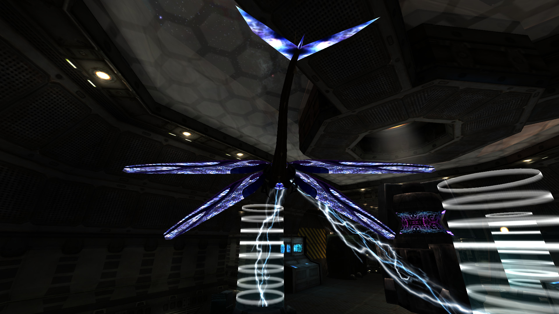 - Zaps up to 6 targets simultaneously within range without requiring aim (range is greater than Tesla zap range, but less than machine gun turret range).