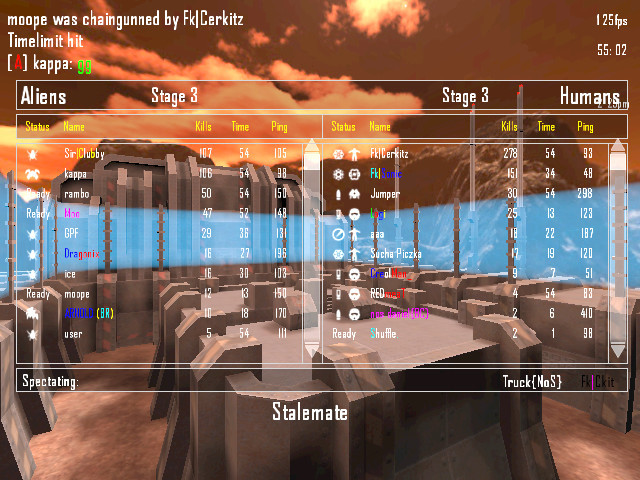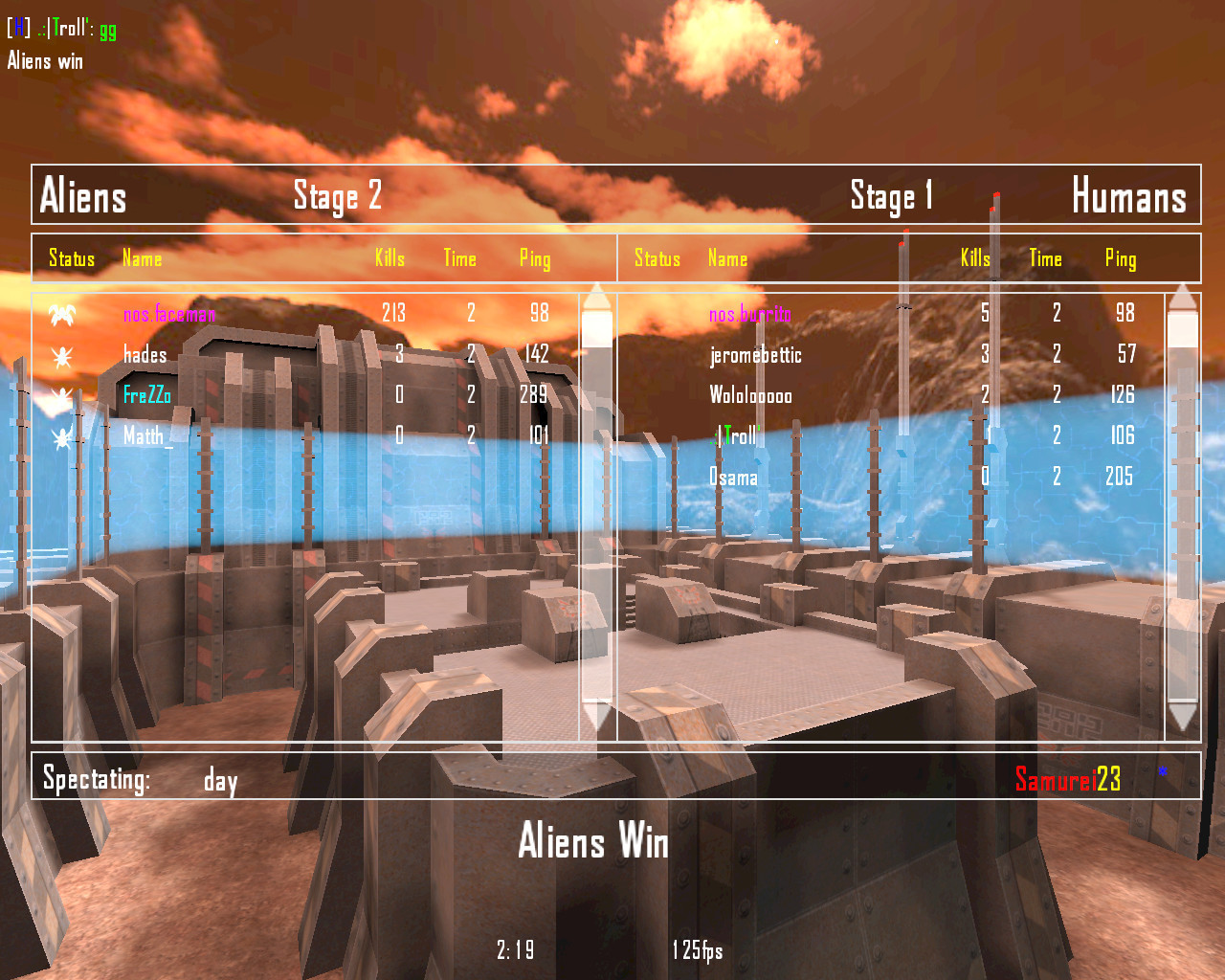 Did a 177 kills in the last days @Ckit was there if i remember well and @Hero too it was against YellowLightnings and hum burrito maybe (in 8v8) (no screenshot) Dragonix made me mad because i had a really bad team at the begin and he was rantwhoring. Then i got mad so scorewhored … ( Tbh @Blizz i defend @burrito because >100 with aliens is far harder than with humans)