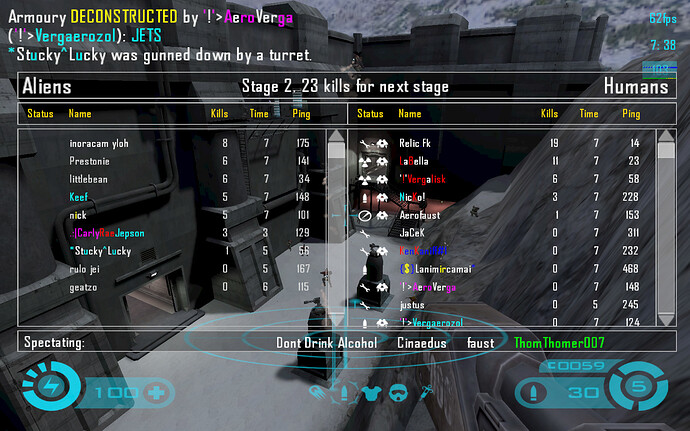 We lost though because of adv tyrants timewarping their way to our RC. Pity hacking shits.