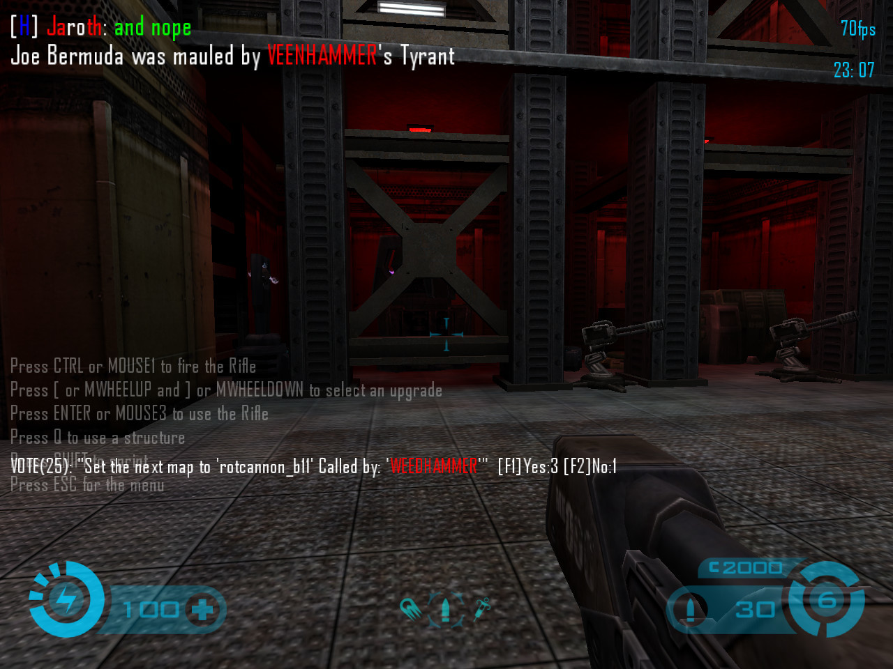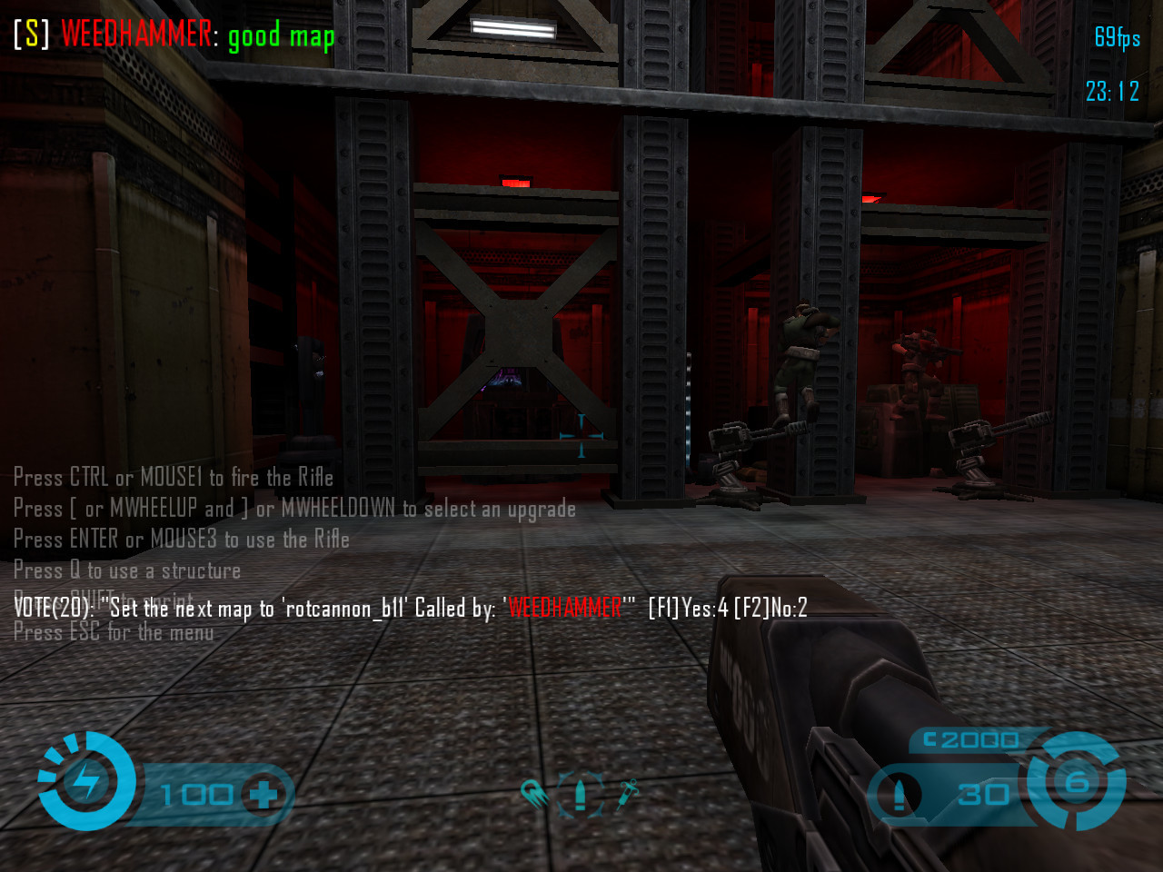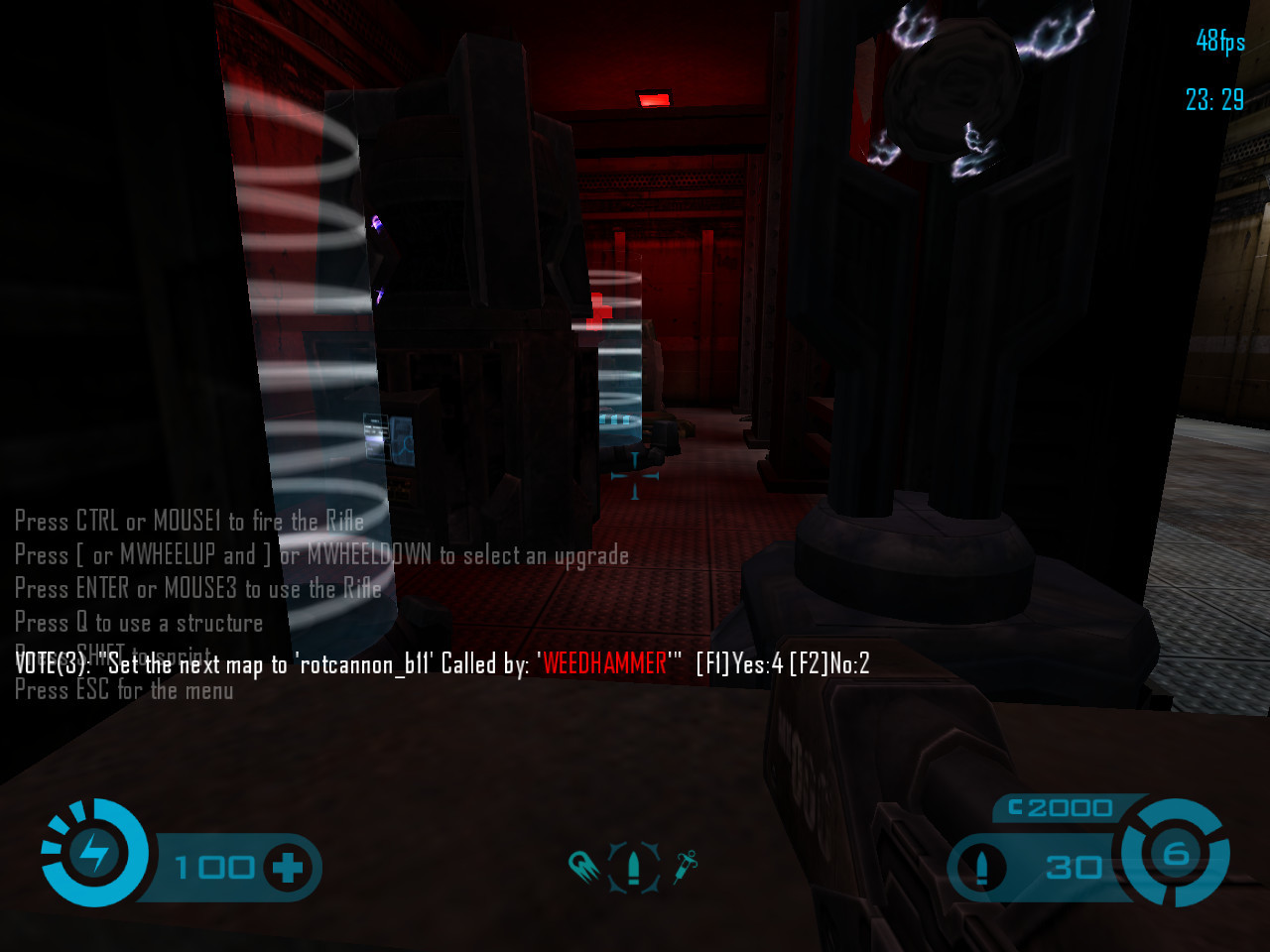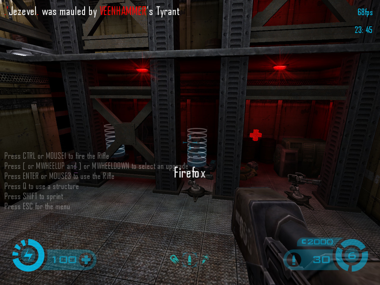 @Jaroth: Tip: type /cg_tut and press tab, and press 0. Press enter. It gets rid of that “how to play tremulous” “what do your keys do”