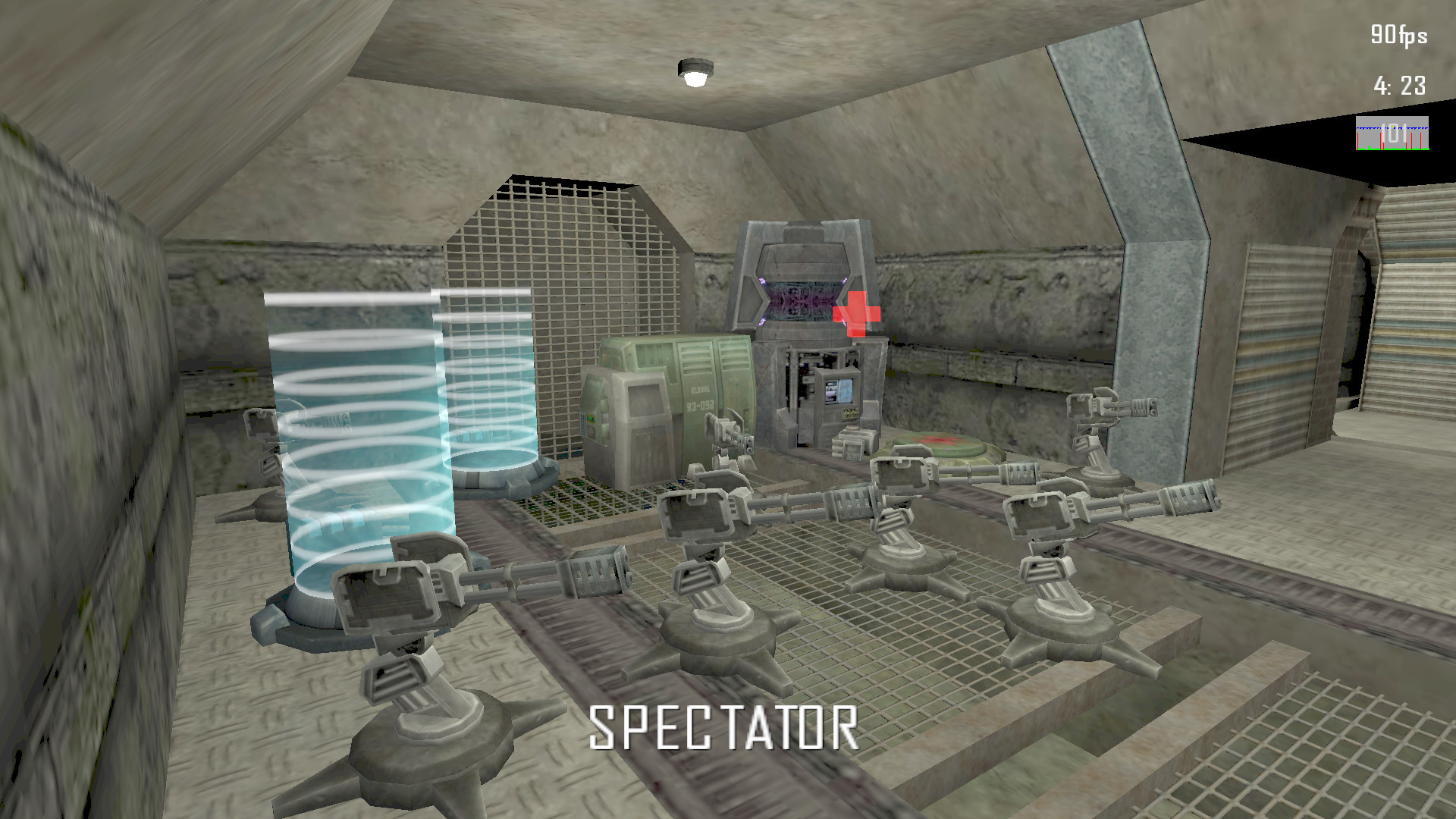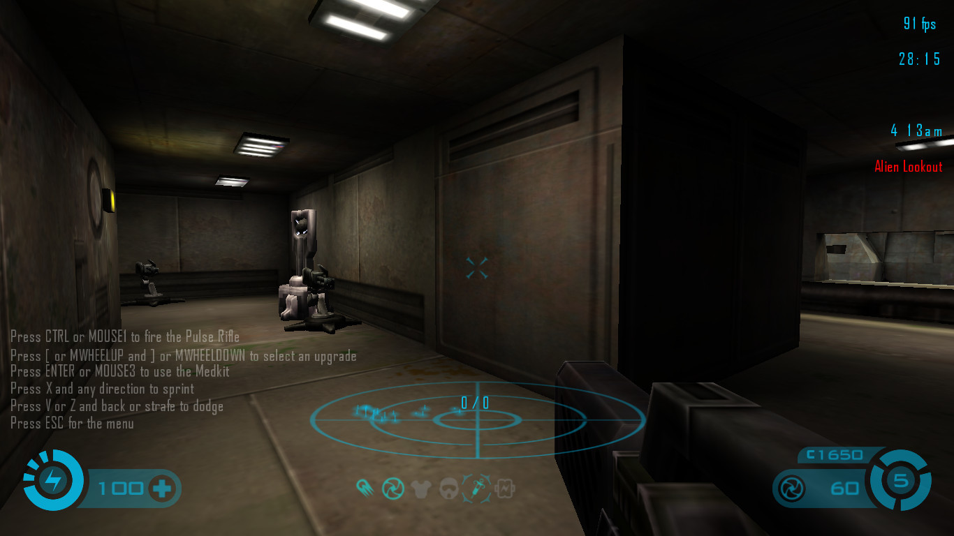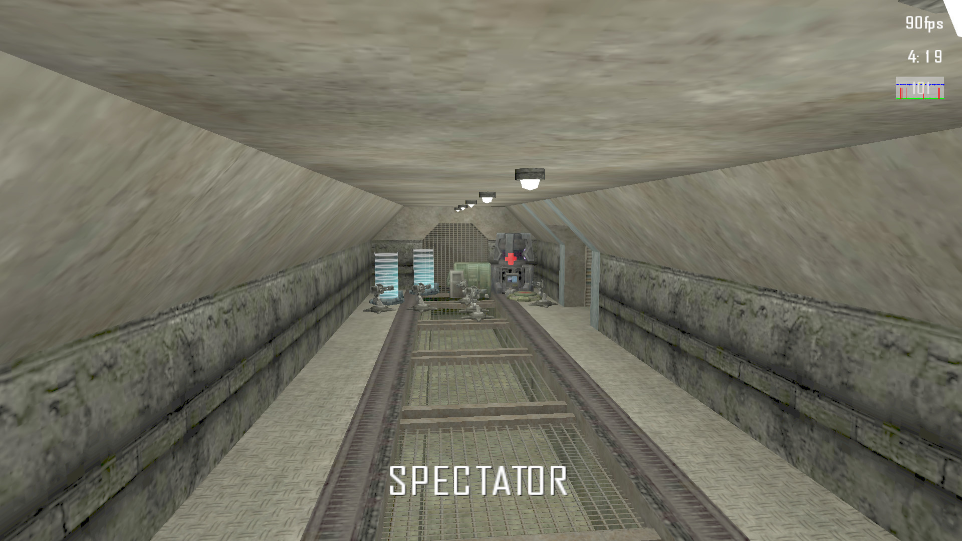 I decided to attempt to rebuild in the upper hall to the alien lookout. When I got to that location, all our nodes were down, I was the last human spawned, and we had about 120 seconds before life support would cut if the reactor core didn’t come back online. Thanks in large part to enemy radar/sense being disabled on the server, I had enough time to rebuild the rc, a telenode, the armoury, and a couple of rets before the aliens spotted us and we were able to defend enough to recover, build a good solid base at that location and then ultimately win the match.