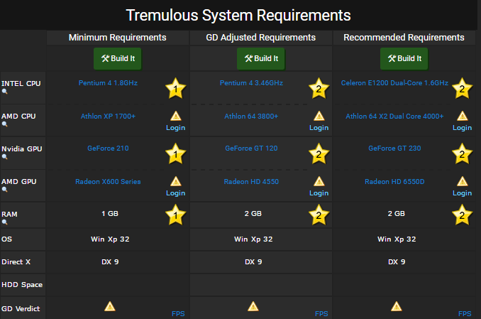 Basically if its built within the last 8 years, it’ll run Tremulous 1.3. For the bells and whistles though? Something like a low-end “Gaming” rig will do fine.